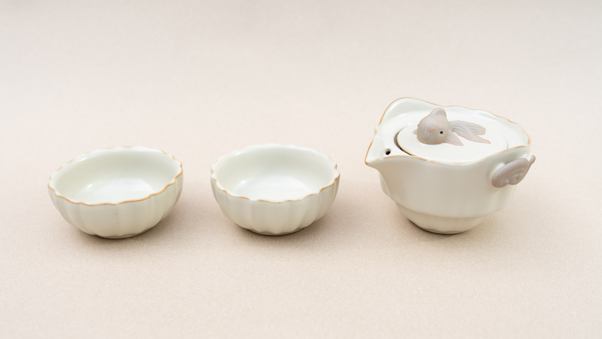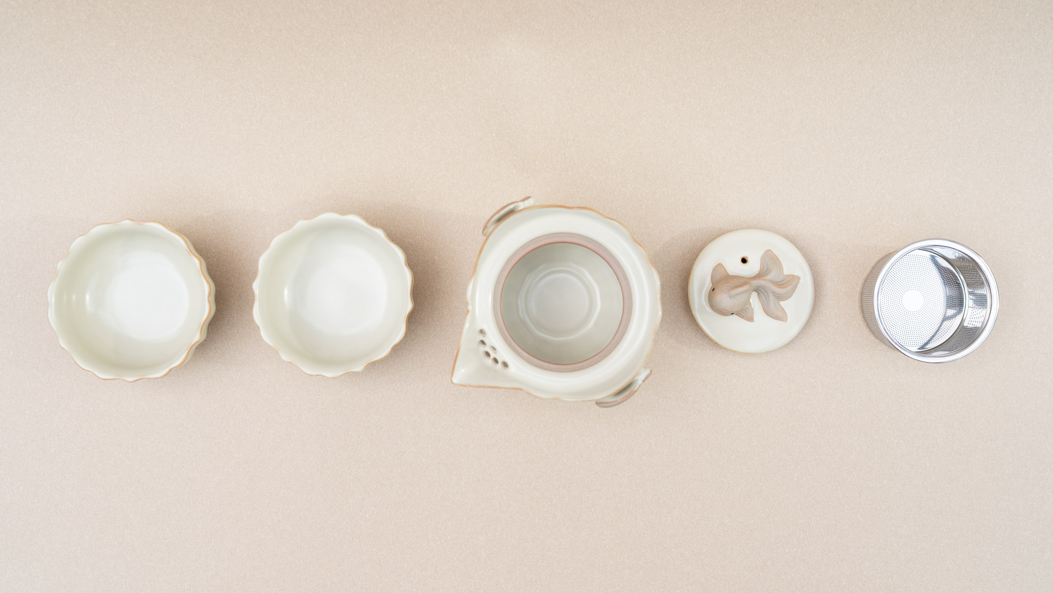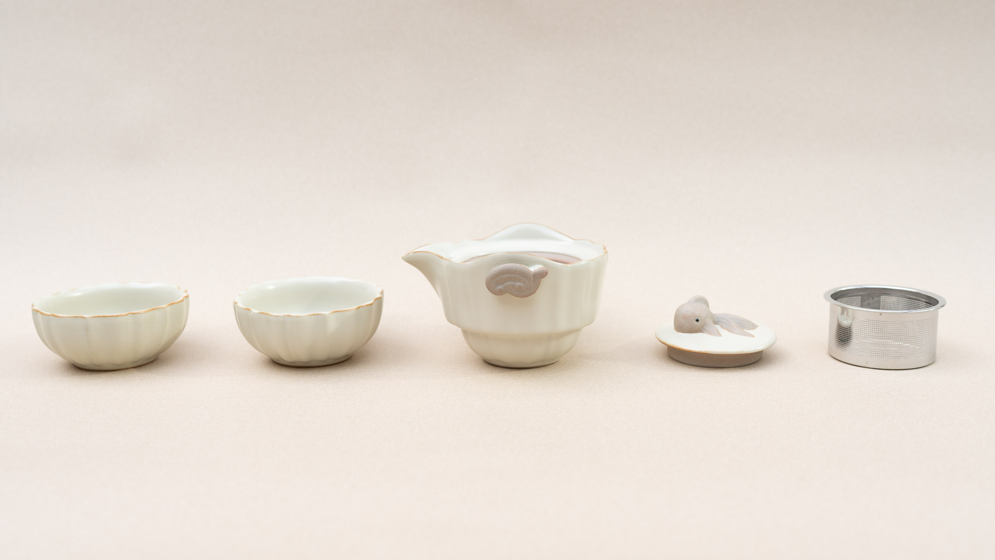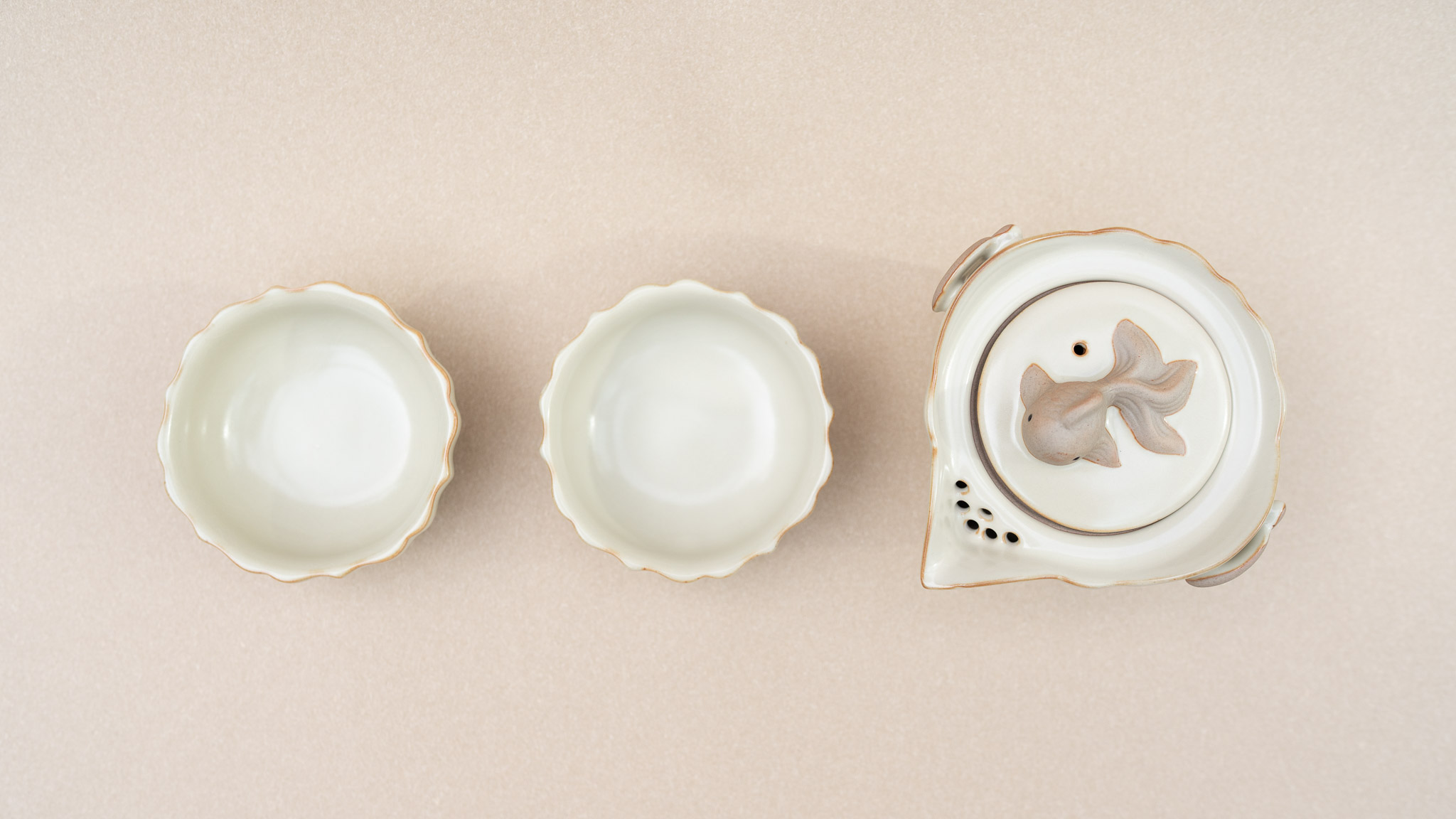 Ceramic Teapot Set with Infuser – Fish Lid, Lucky Cloud Handle & 2 Cups